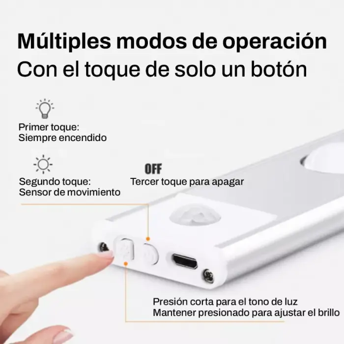 Con la sonda de sensor inteligente incorporada, la luz se iluminará automáticamente cuando las personas entren en el rango de detección en un entorno de luz oscura o débil.